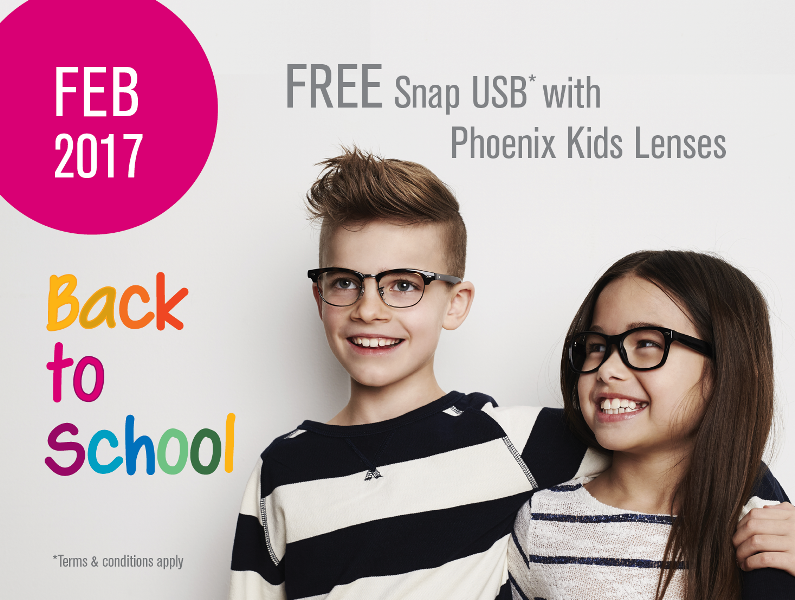 Through February 2017 you will receive a FREE* Snap USB when you purchase HOYA Kids Phoenix lenses.